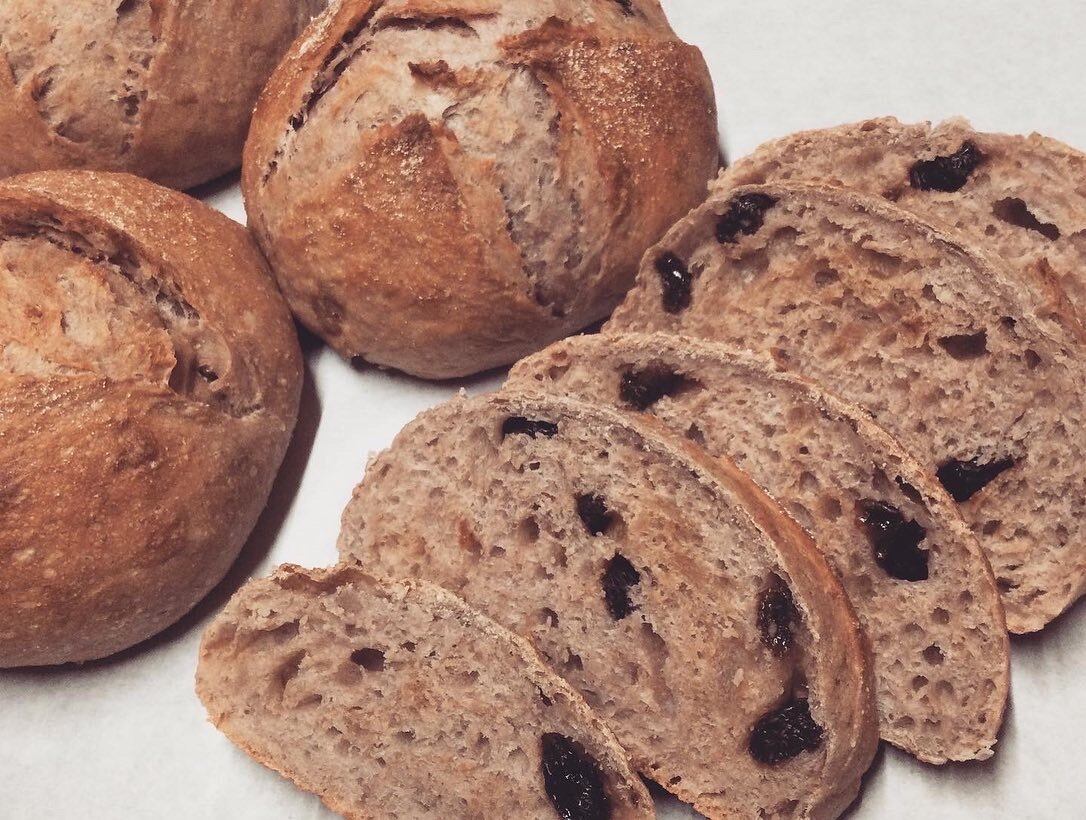 九州産小麦と全粒粉使用、自家製酵母、極力無農薬又は減農薬野菜と全具材手作り、素材重視の重量感満足感あるぱんです
