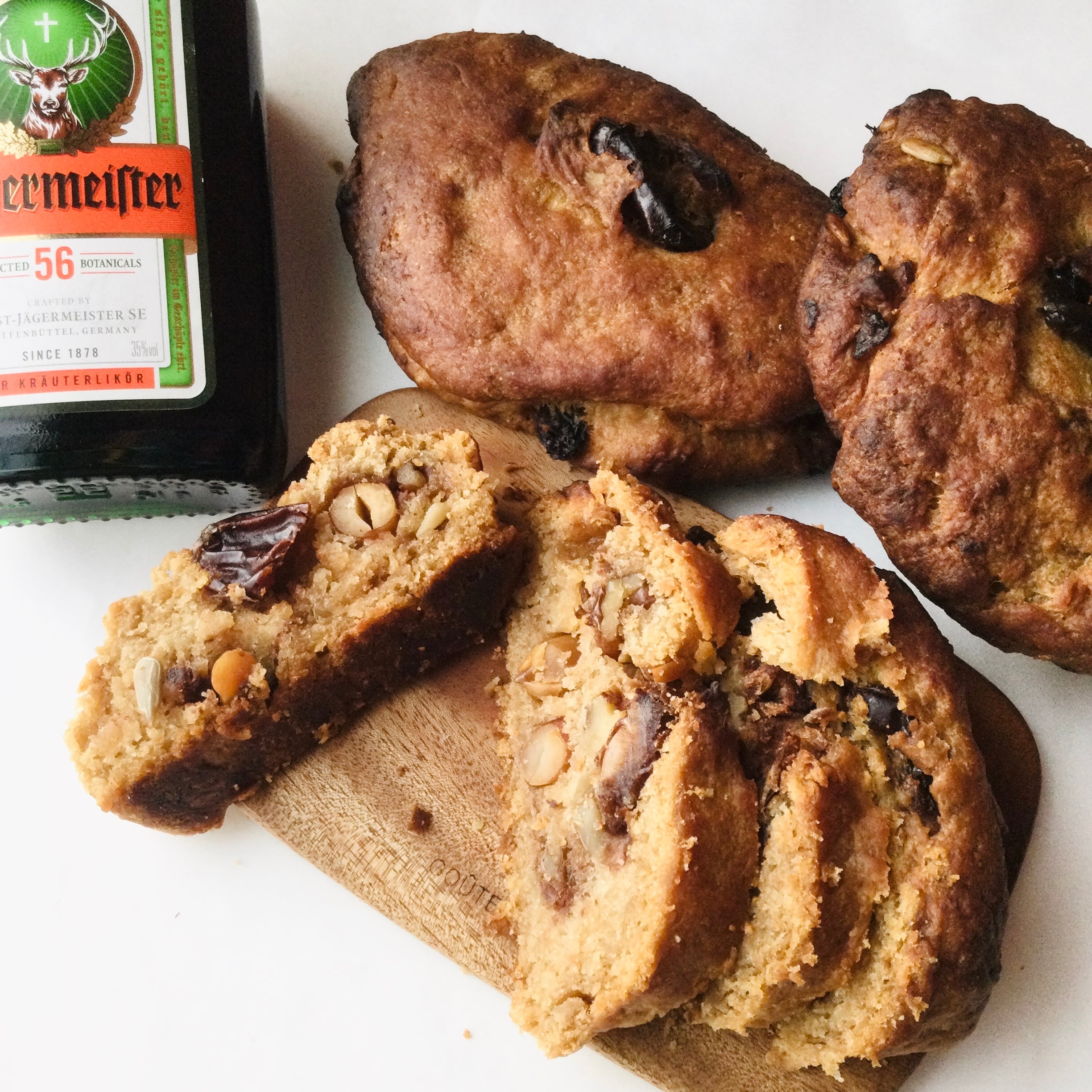 ドイツ産イエーガーマイスター(56種ハーブ使用のボタニカルリキュール)を漬込みと焼上げ時に染込ませ自家製オールスパイスMIXとひまわりオイルコーティングで仕上げる大人向風味です(白砂糖コーティングは致しません。アルコール分は焼成でほぼ抜けますが保存上塗分が若干残りますのでお召上がり時軽く焼くと飛ばせます)。